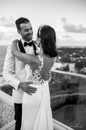 What a fairy tale wedding. Everything just seemed perfect for Melisa and Andrews wedding. We had great weather and we had beautiful natural light for the getting ready photos which really makes a difference. Everyone I met was wonderful and the ceremony went ahead at Jonahs, Whale Beach. Wow! An absolutely stunning setting looking over the beach and your view extends out to the horizon. We went down to the beach for bride and groom only photos for a quick 15 minute shoot. We definitely made the most of it getting in as many photos as we could around a few different spots. There's a beautiful sand stonewall wall which is the perfect dramatic backdrop. Everyone had a blast into the night with a 3 piece band playing alongside a DJ. The dance floor was pumping!
